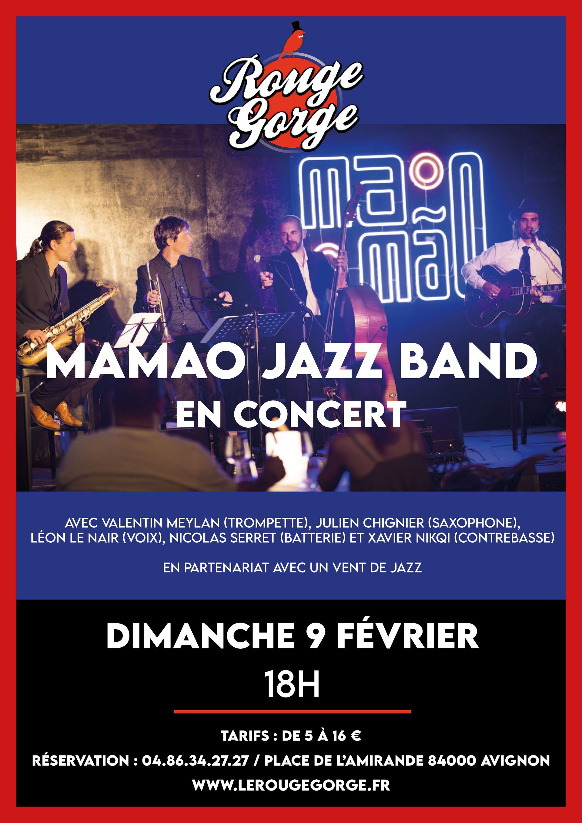 De la Nouvelle Orléan aux Caraïbes, venez voyager avec le Mamao Jazz Band. Groupe swing, accompagné de la voix de Léon Le Nair,
